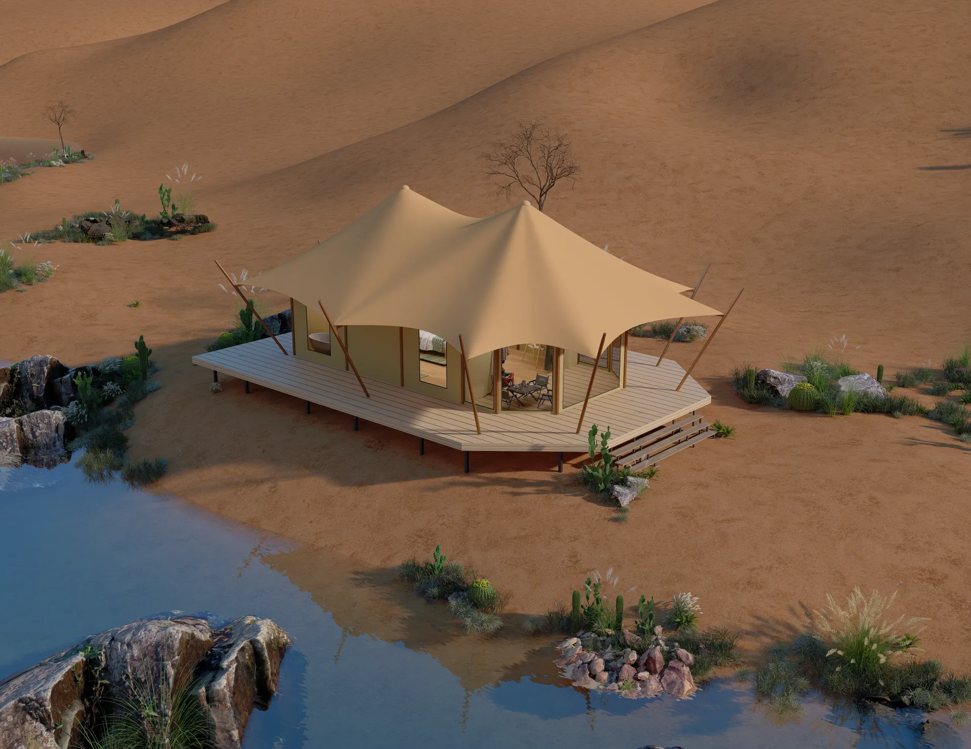 Experience the great outdoors in style with our Luxury Tent, designed for unforgettable memories! Experience nature without sacrificing luxury in our top-tier Luxury Tent!