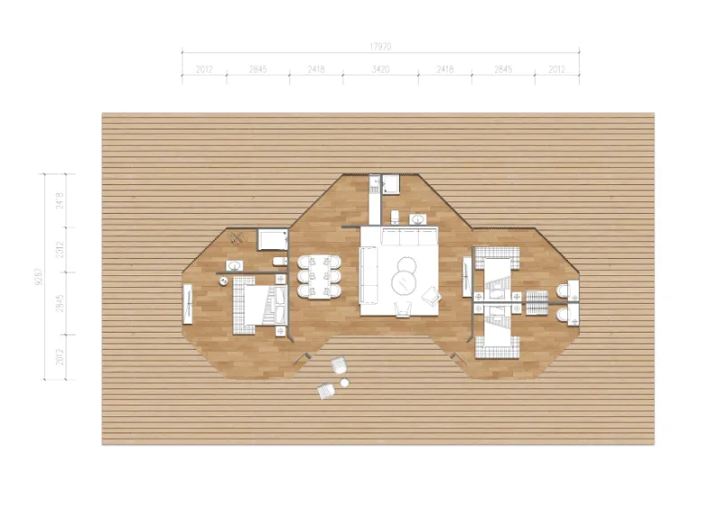The 150sqm interior uses the exquisite layout of a multi-functional suite. The living room and dining area retain open, reasonably sized and positioned windows to ensure good ventilation in the luxury tent while providing beautiful natural views. Both suites are equipped with separate bathrooms. The hotel’s high-standard and carefully designed luxurious rooms and supporting facilities are ideal for teams, guests and business people who pursue a high quality of life.